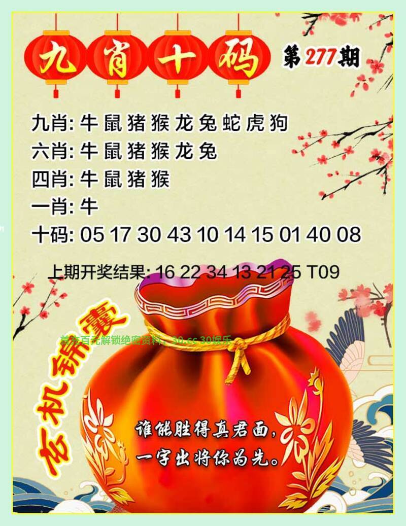 277期:九肖 | 龙猴兔鼠虎牛狗蛇马 | 虎16中 |