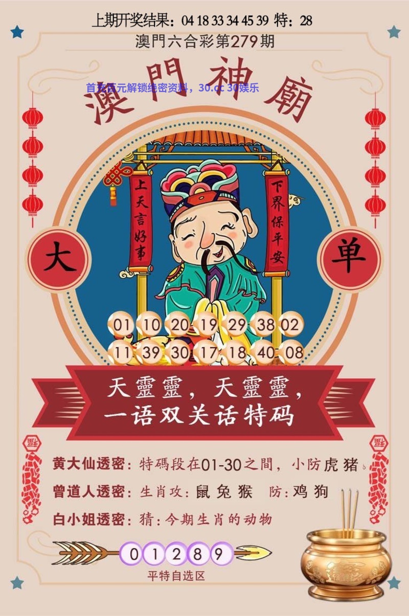 281期:二肖 | 鼠狗 | 發00中 |