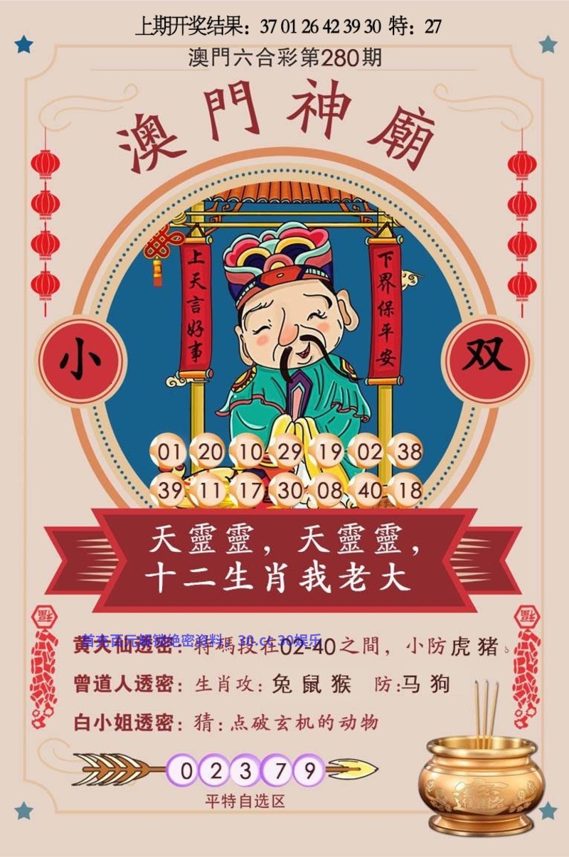 280期:七肖 | 羊兔猪虎鸡马鼠 | 鼠42中 |